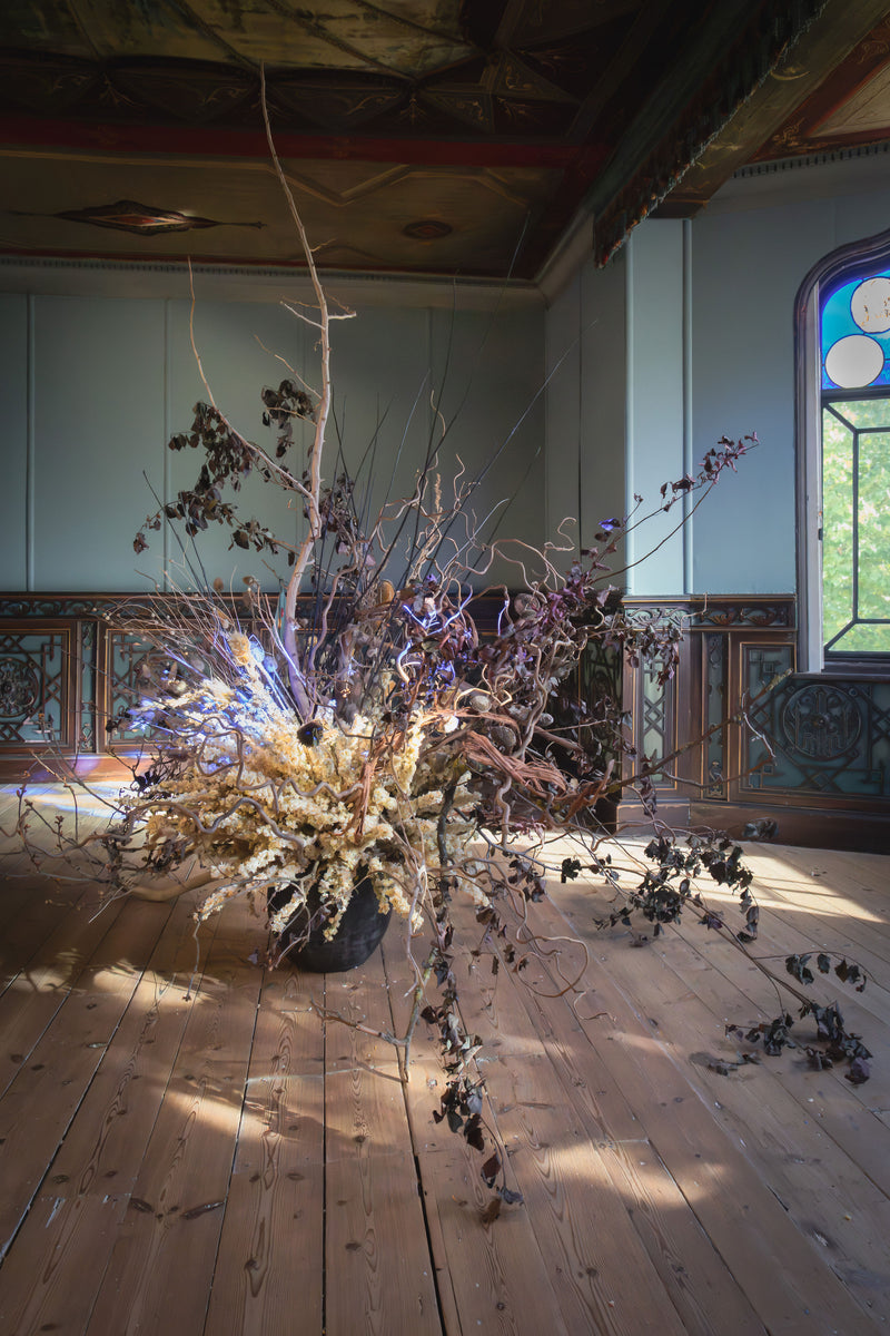 The historic architecture of the Strawberry Hill House provided a richly layered backdrop, offering a dramatic context in which to explore dried botanicals as sculptural, expressive forms.