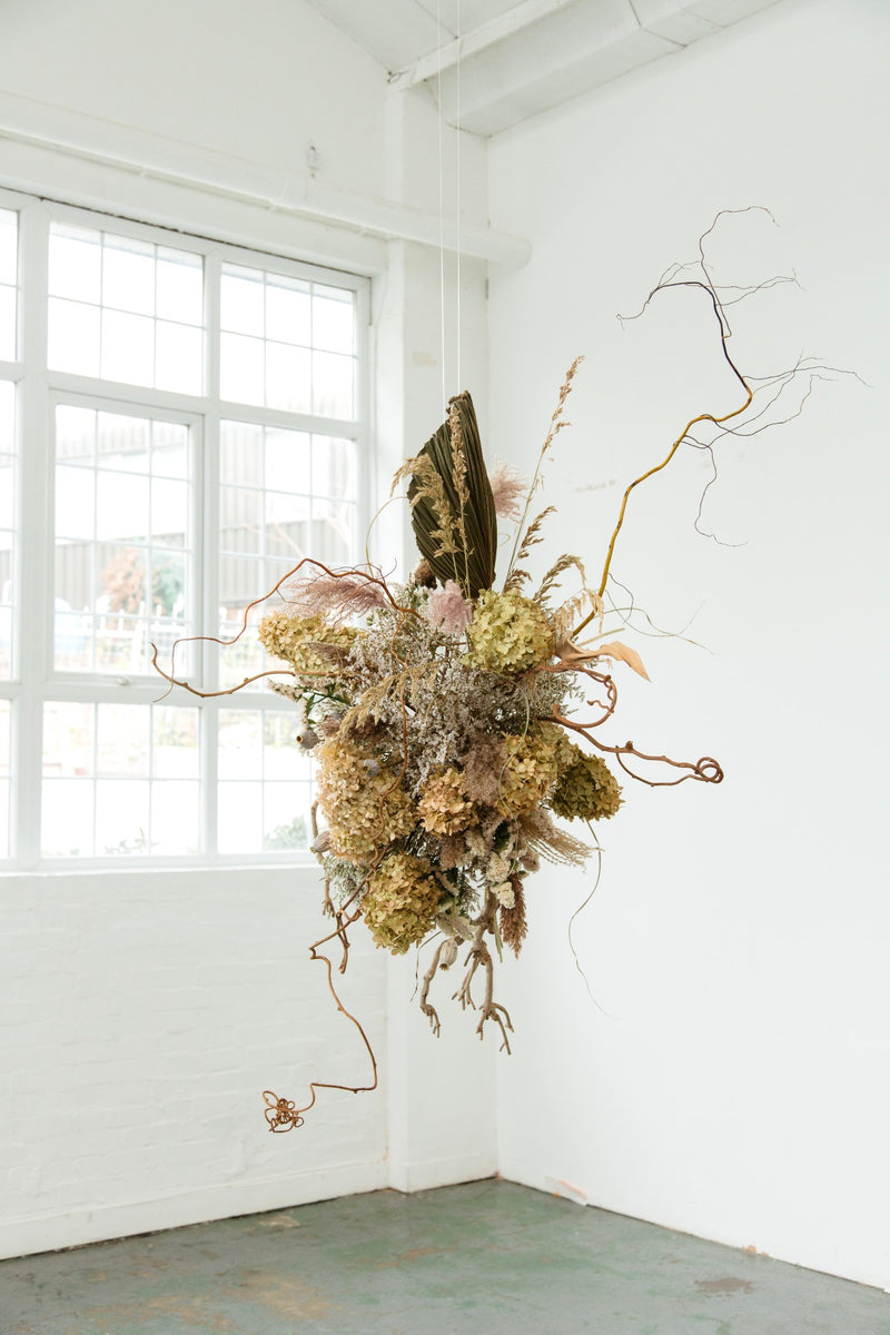 This exhibition emerged during Design by Nature’s transition from fresh floristry to working primarily with dried botanicals. At that time, flowers from weddings and events were carefully repurposed and dried, allowing materials that would otherwise be discarded to take on a second life.