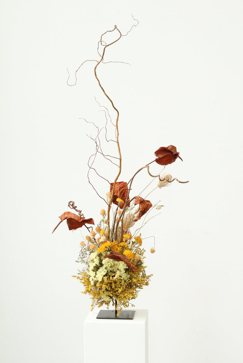 While this philosophy stands in contrast to the polished perfection often associated with mainstream floristry, it has become central to the evolution of Design by Nature. As the practice has matured, focus has shifted toward the abstract, sculptural forms that dried flowers naturally take as they age and change.